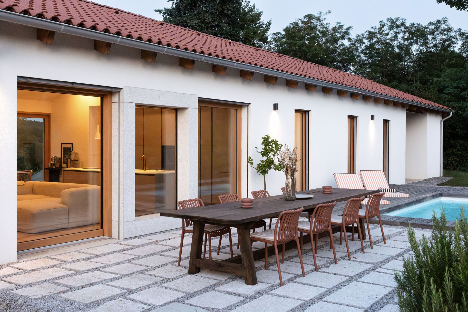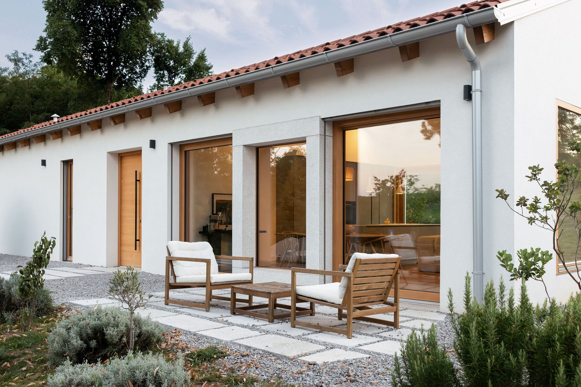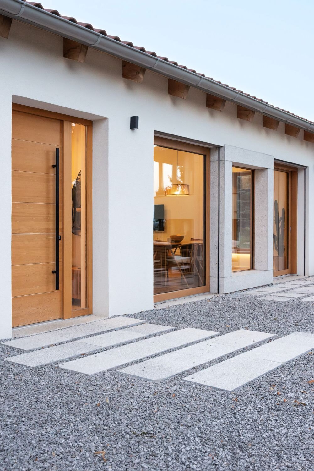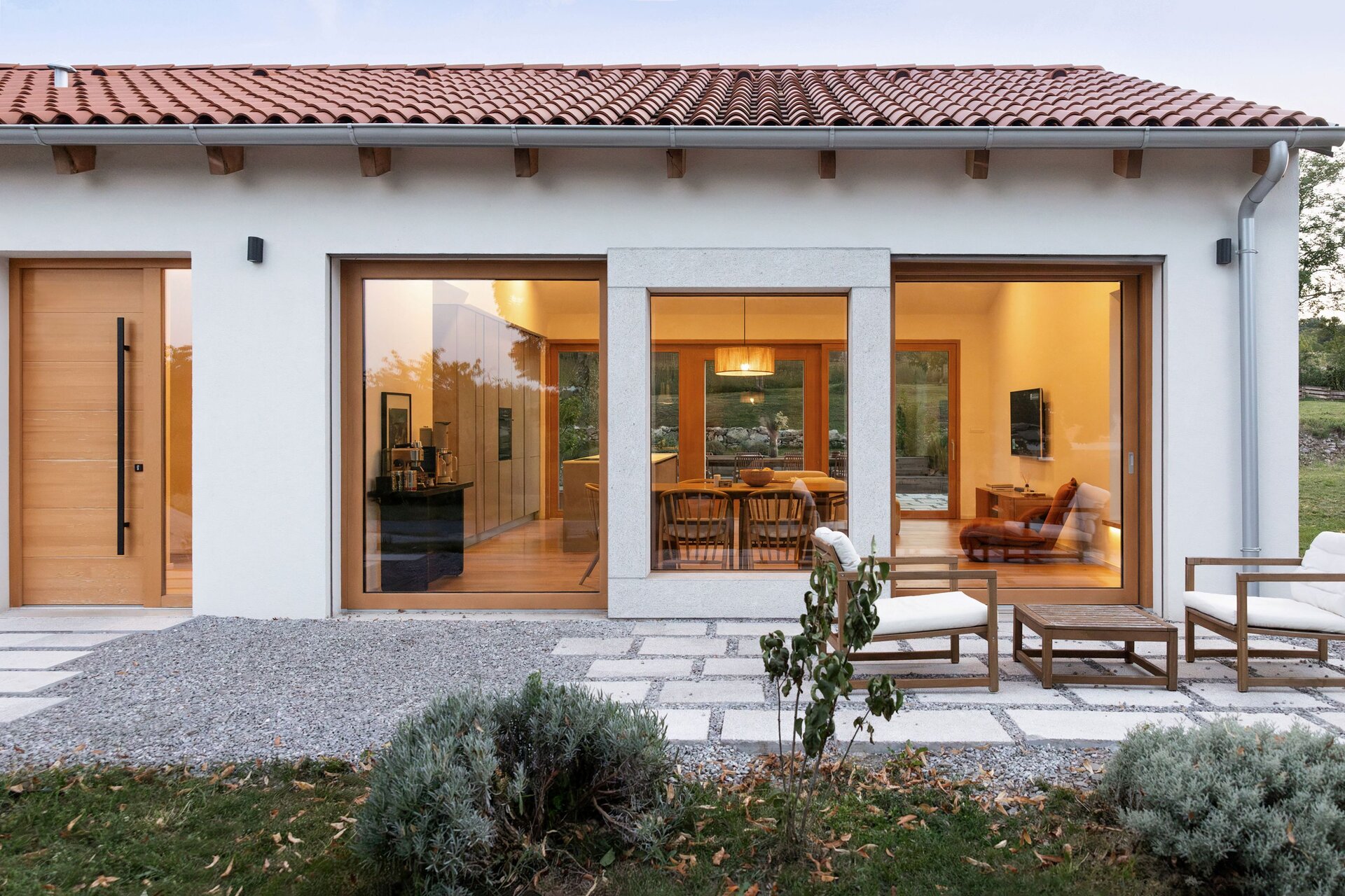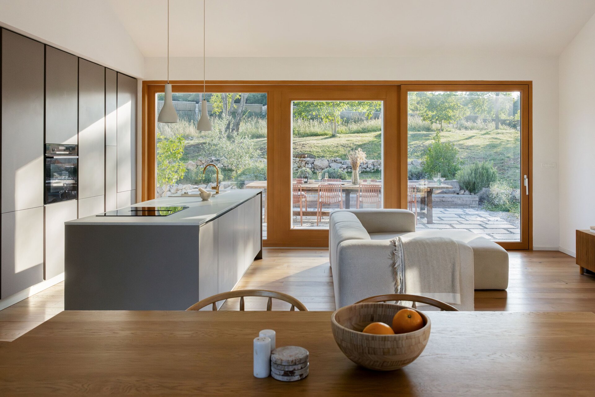 Z izborom oken AJM je arhitektom uspelo ohraniti avtentičnost naravnih materialov, obenem pa doseči sodoben estetski izraz – minimalistične linije, skrita okovja in popolna zatesnitev.